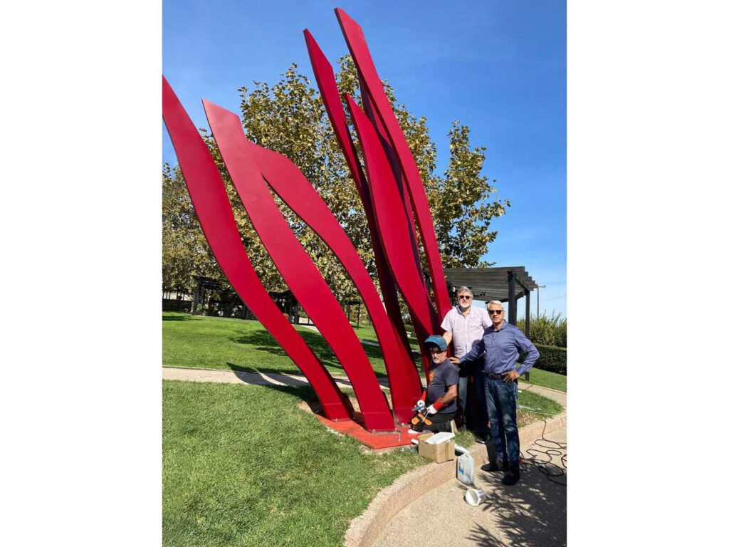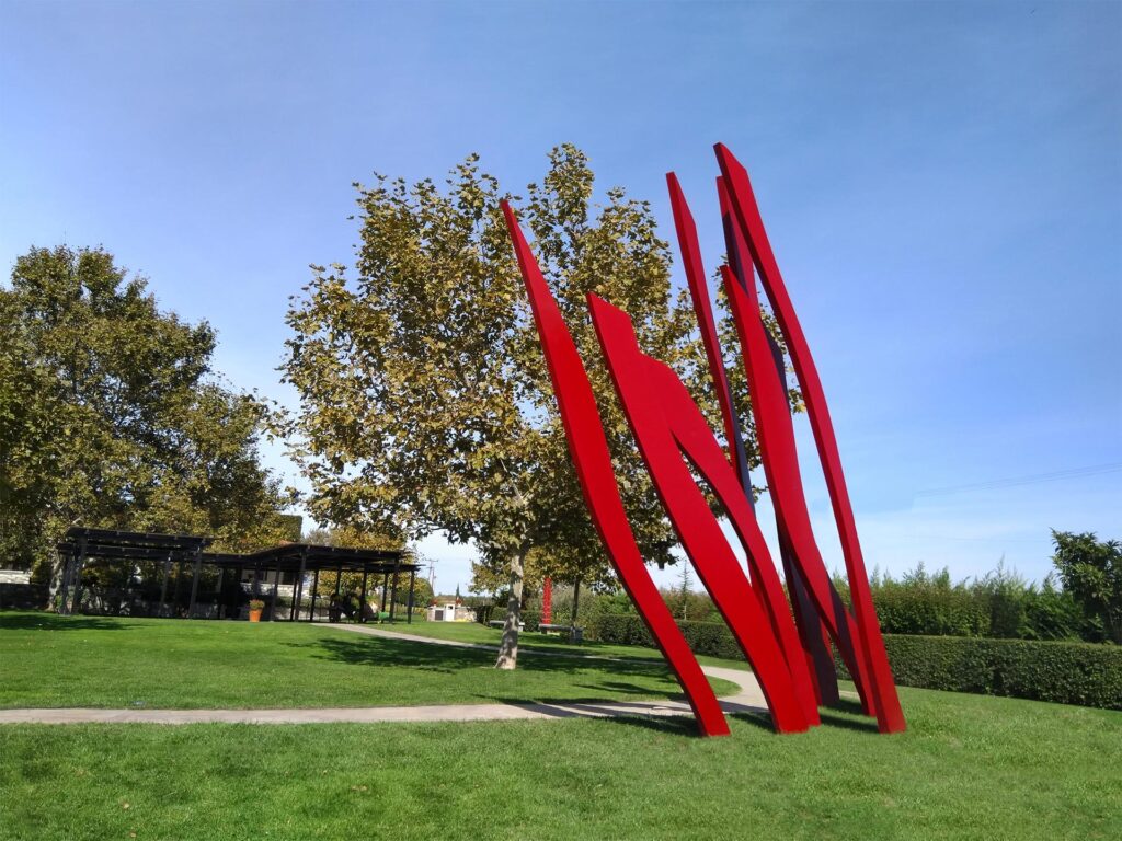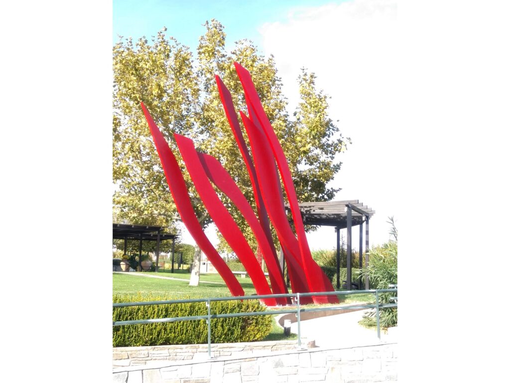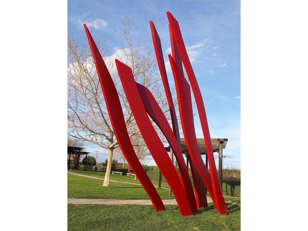 Χρωματισμένος χάλυβας. Διαστάσεις: 550cm x 450cm x 150cm Τοποθεσία: Κτήμα Γεροβασιλείου, Επανομή Έτος: 2020