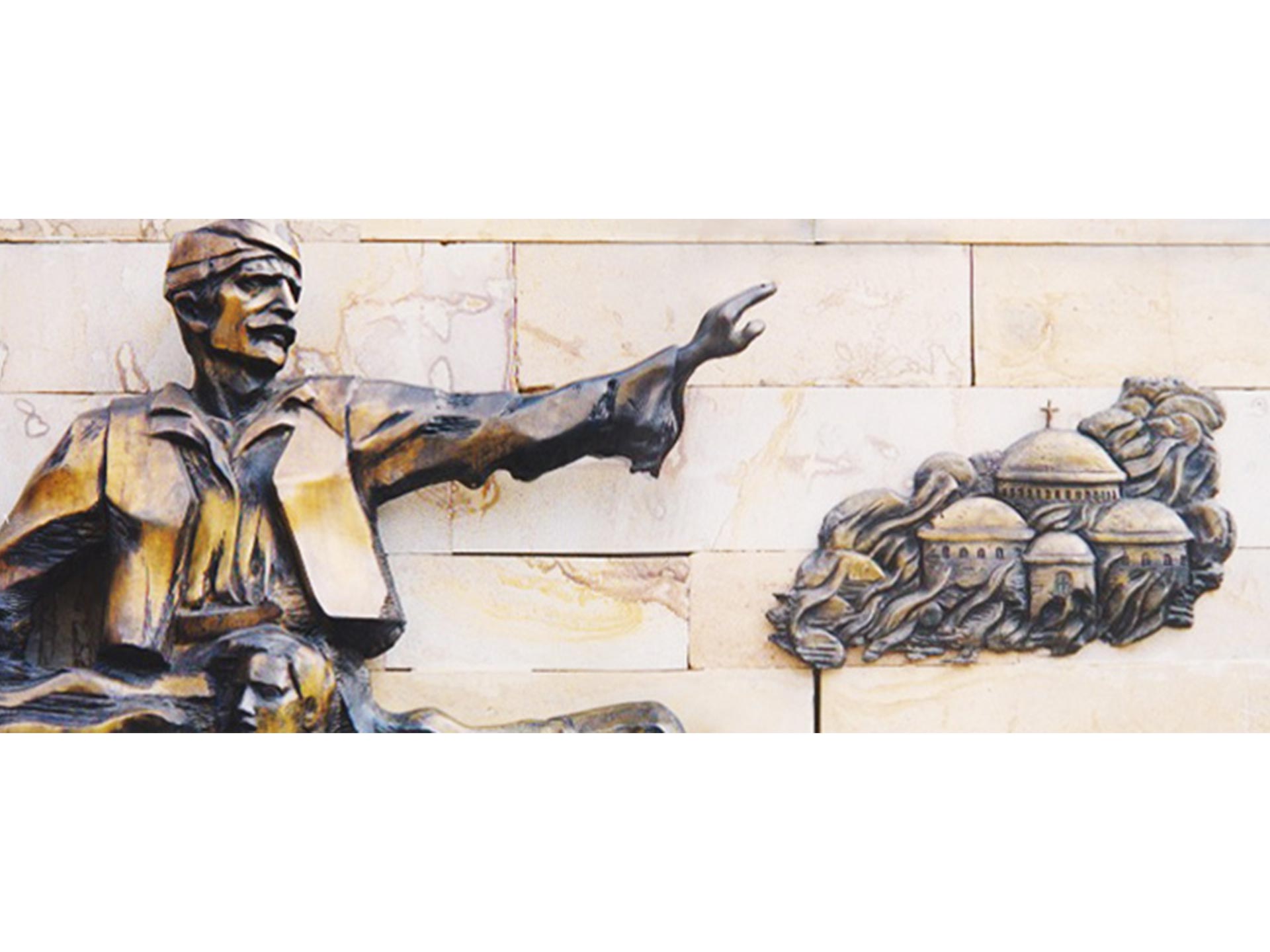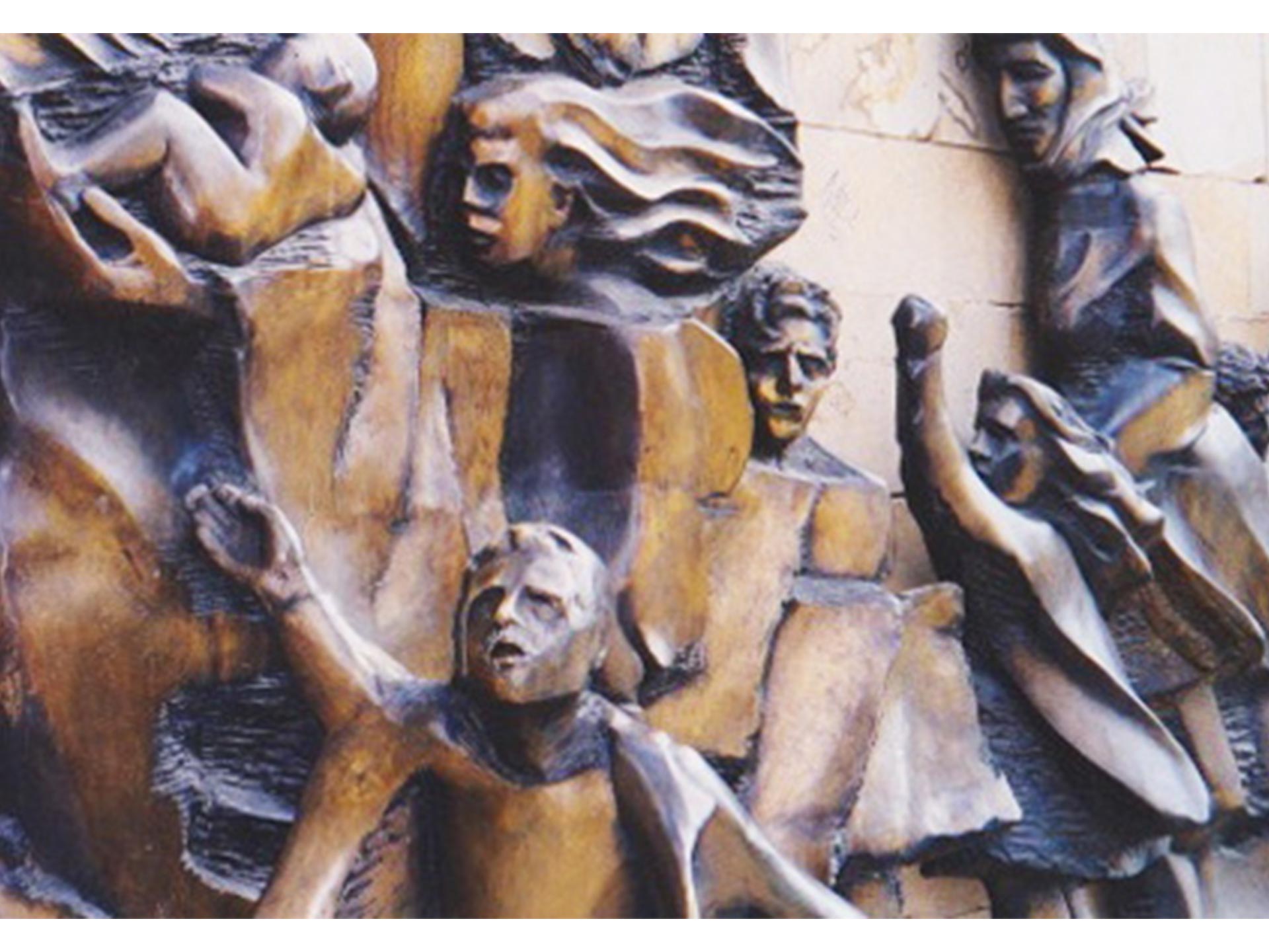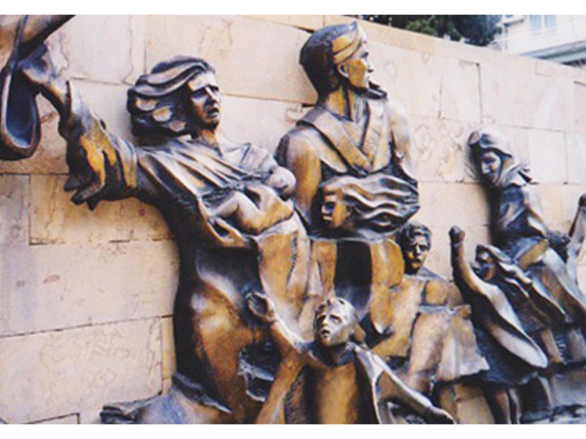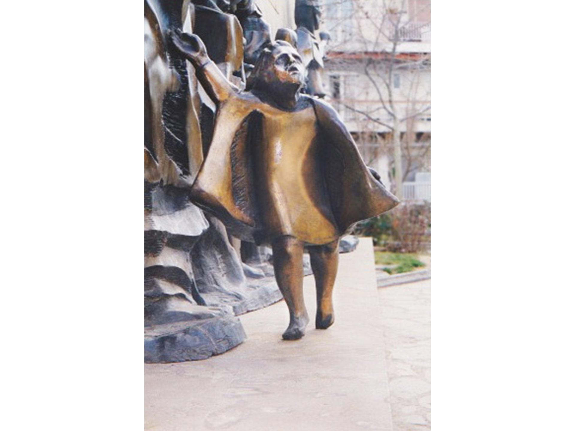 Μπρούντζος, εμφανές μπετόν. Διαστάσεις: 230cm x 900cm x 60cm σε βάθρο από πωρόλιθο Διαστάσεις: 250cm x 1000cm x 80cm Τοποθεσία: Αμπελόκηποι Θεσσαλονίκης Έτος: 1996
