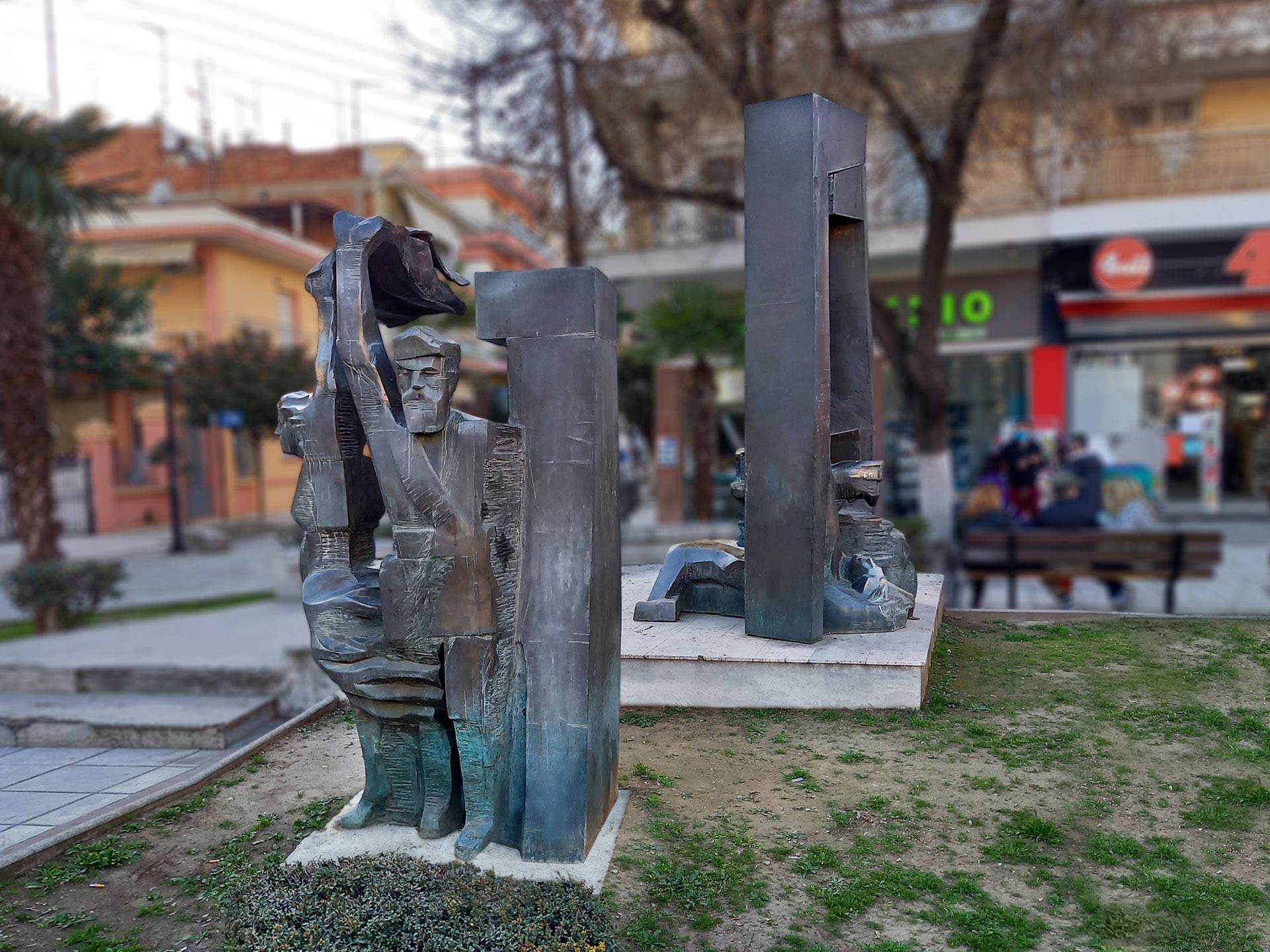 Μπρούντζος, μάρμαρο. Διαστάσεις: 400cm x 600cm x 400cm Τοποθεσία: Αμπελόκηποι Θεσσαλονίκης Έτος: 1991