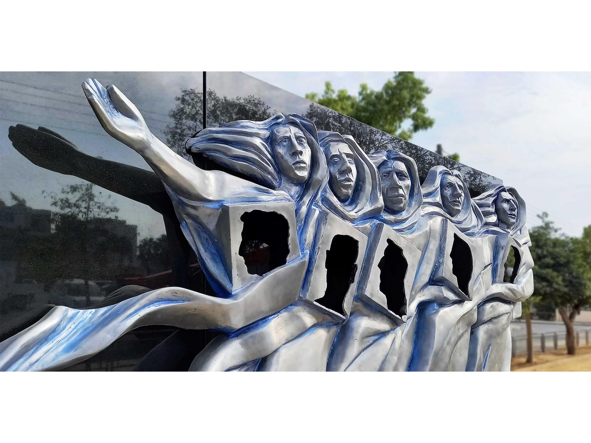 Αλουμίνιο, μαύρος γρανίτης, εμφανές μπετόν. Διαστάσεις: 700cm x 700cm x 100cm Τοποθεσία: Λεμεσός Κύπρου Έτος: 2021